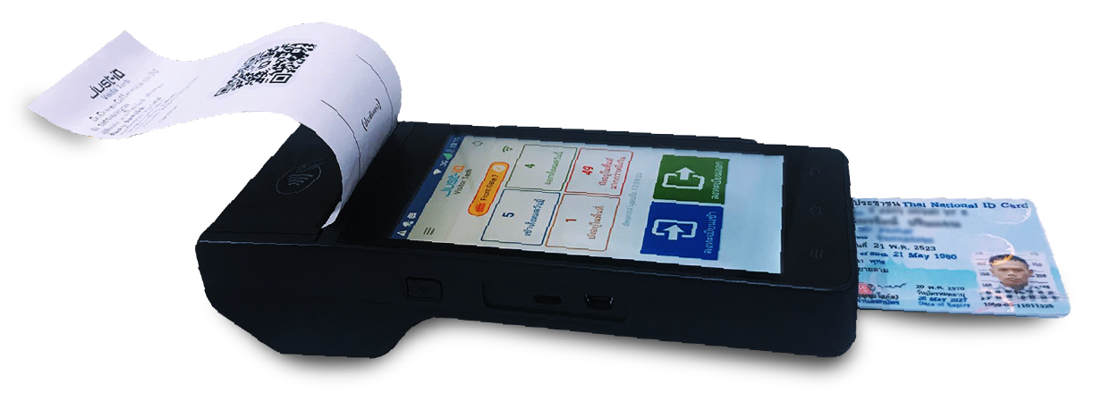 Just-ID Visitor เครื่องบันทึกผู้มาติดต่อพื้นที่แบบพกพา สามารถบันทึกรายละเอียดของผู้มาติดต่อจากชิบบัตรประชาชน บันทึกภาพ และมีสลิปในตัวสามารถปริ้นรายละเอียดสำคัญของการติดต่อ ระบบจะมีการบันทึกข้อมูลผ่านระบบ QR-Code จัดเก็บข้อมูลบน Cloud Server ทำให้สามารถเรียกดูข้อมูลแบบออนไลน์ได้ตลอดเวลา ไม่พลาดทุกความปลอดภัยในพื้นที่