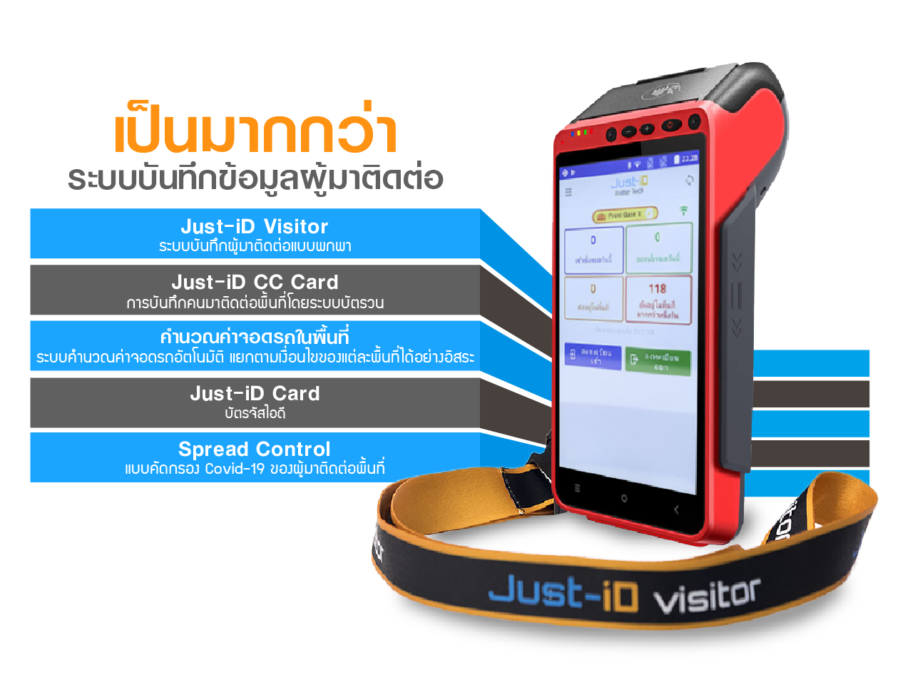 - ถ้านำระบบ Just-iD Visitor ไปใช้ พื้นที่ของท่านจะเกิดความปลอดภัย สูงสุด