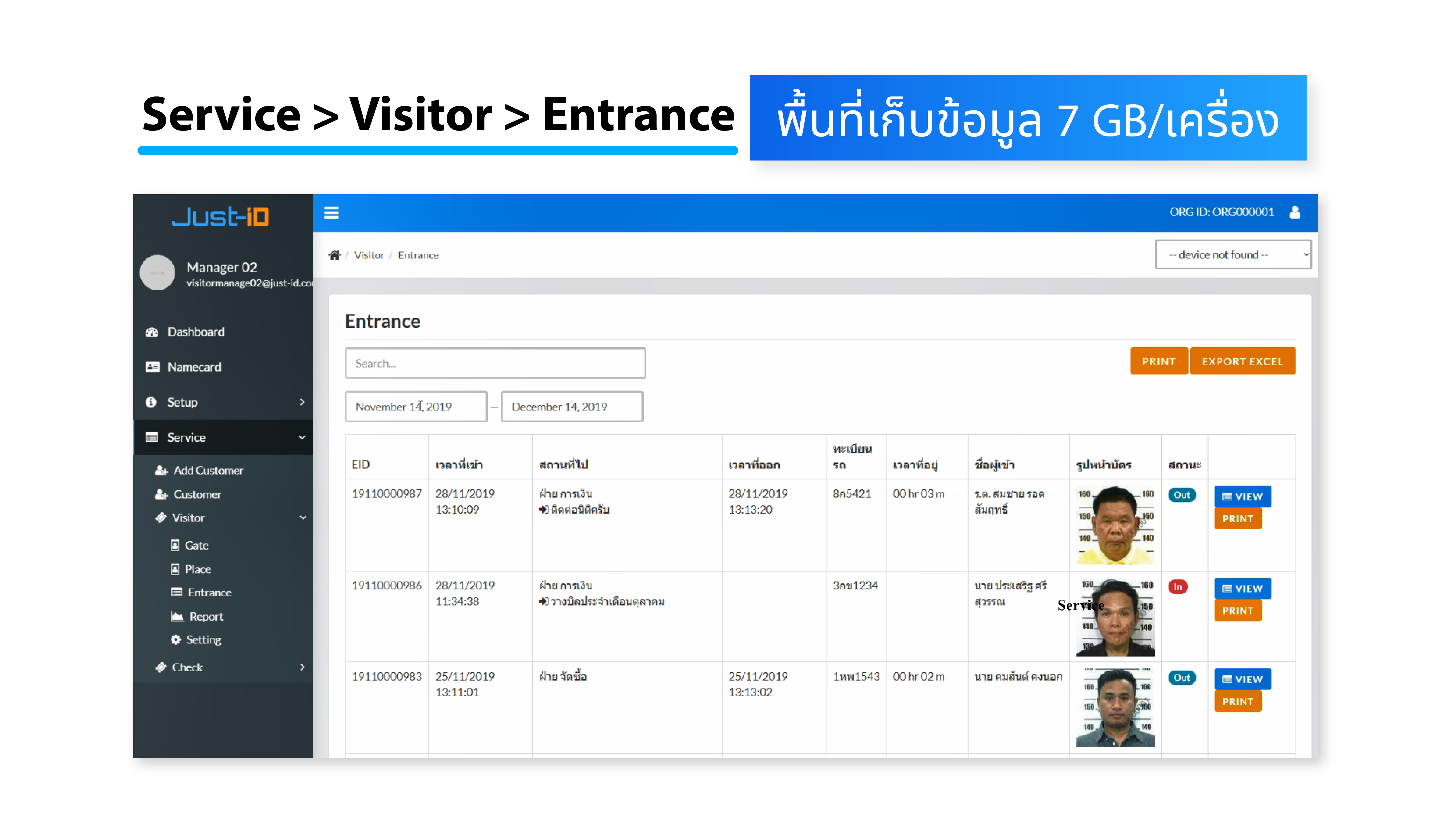 การเรียกดูข้อมูล Just-iD Visitor System
